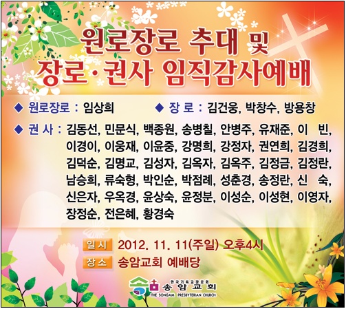 Copyright ¨Ï songam Presbyterian Church. All rights reserved. Produced by